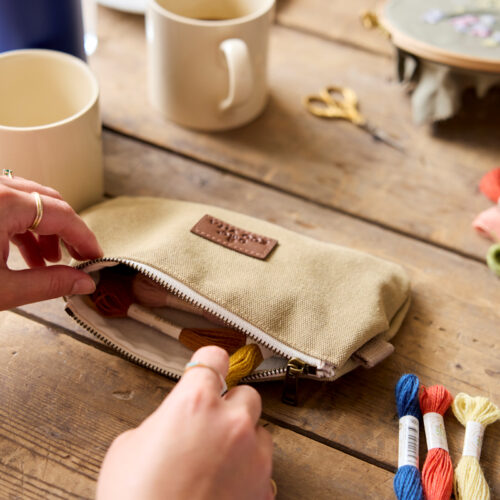 Flot pung til opbevaring af broderi- og strikketilbehør.