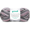 Dette bløde strømpe garn fra tyske Gründl danner striber i smukke farver når du strikker.