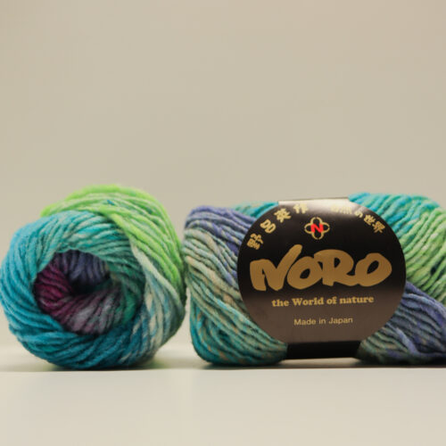 Ritas Hue er en farvestrålende hue strikket i helt unikt NORO Uld garn med snoninger der understreger det unikke garn.